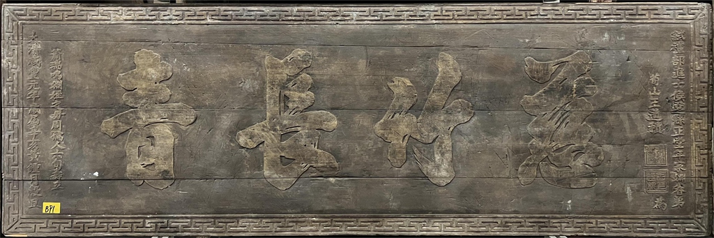 节孝 平板无框。黑底金字。匾上中部有金框边红底金字“钦旌”。