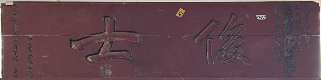俊士 平板无边框,匾心朱砂红底,浅阳刻字。