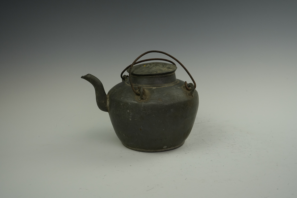 锡制莲瓣纹圆鼓腹提梁盖壶