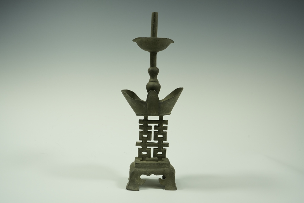锡制福字纹元宝型烛台