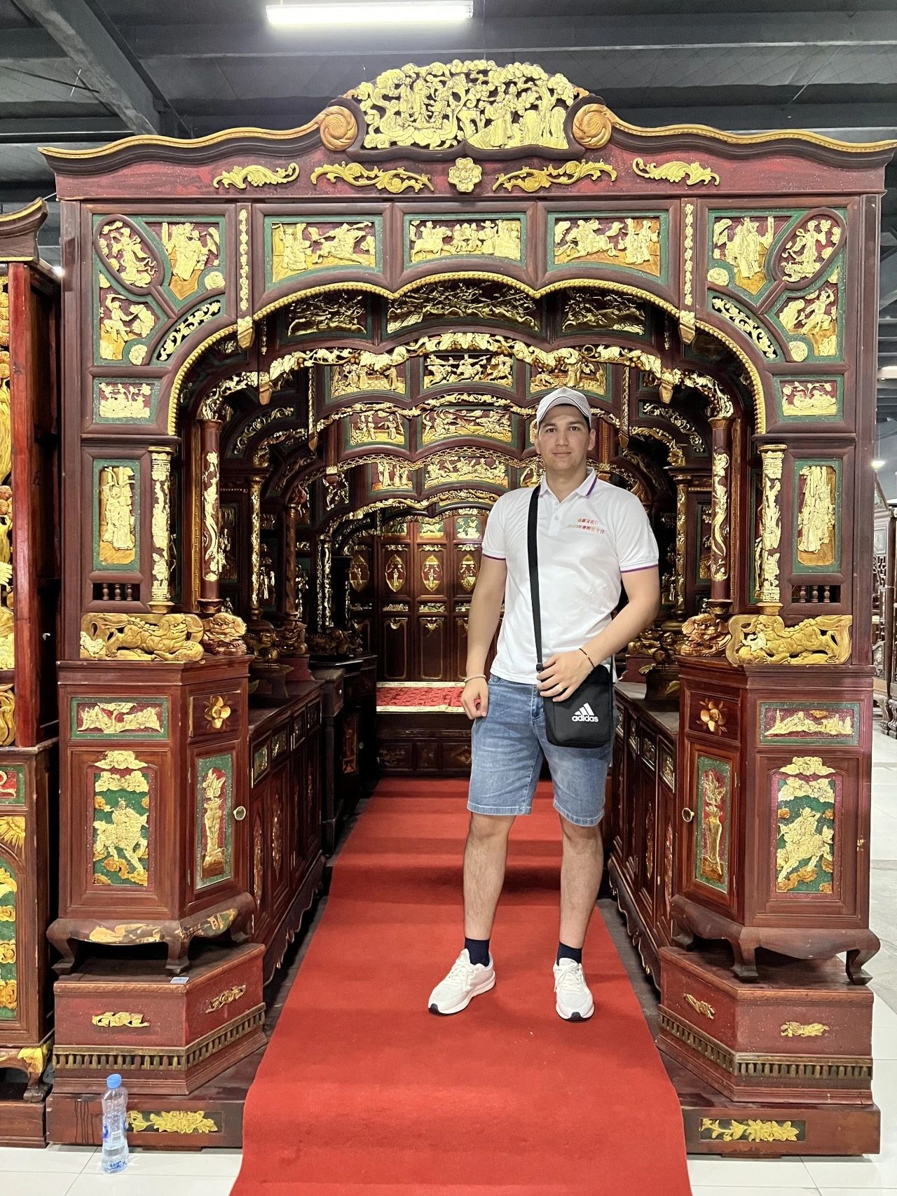 在收藏馆,他们吃惊古人为什么会建造那么豪华的顶子床。他们会问,打造一张床是不是需要特别长时间。他们夸张的表情、有趣的问题,让工作人员忍不住赞叹他们的认真态度。
