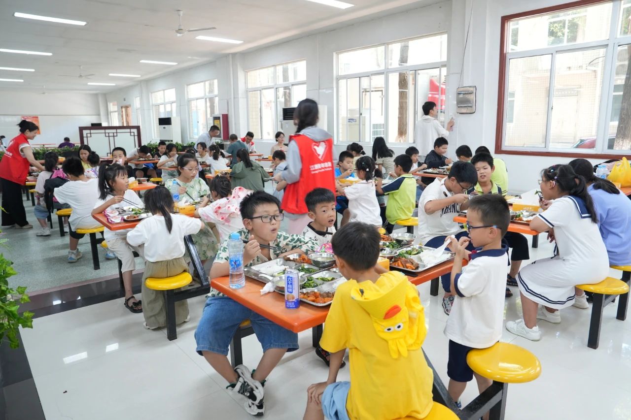 同学们一下车直奔煌上煌职工食堂,感受煌上煌员工的就餐日常。排队、取餐、就座、用餐,吃完后主动把餐盘放到回收处,每一步同学们都井然有序。给同学们点赞!