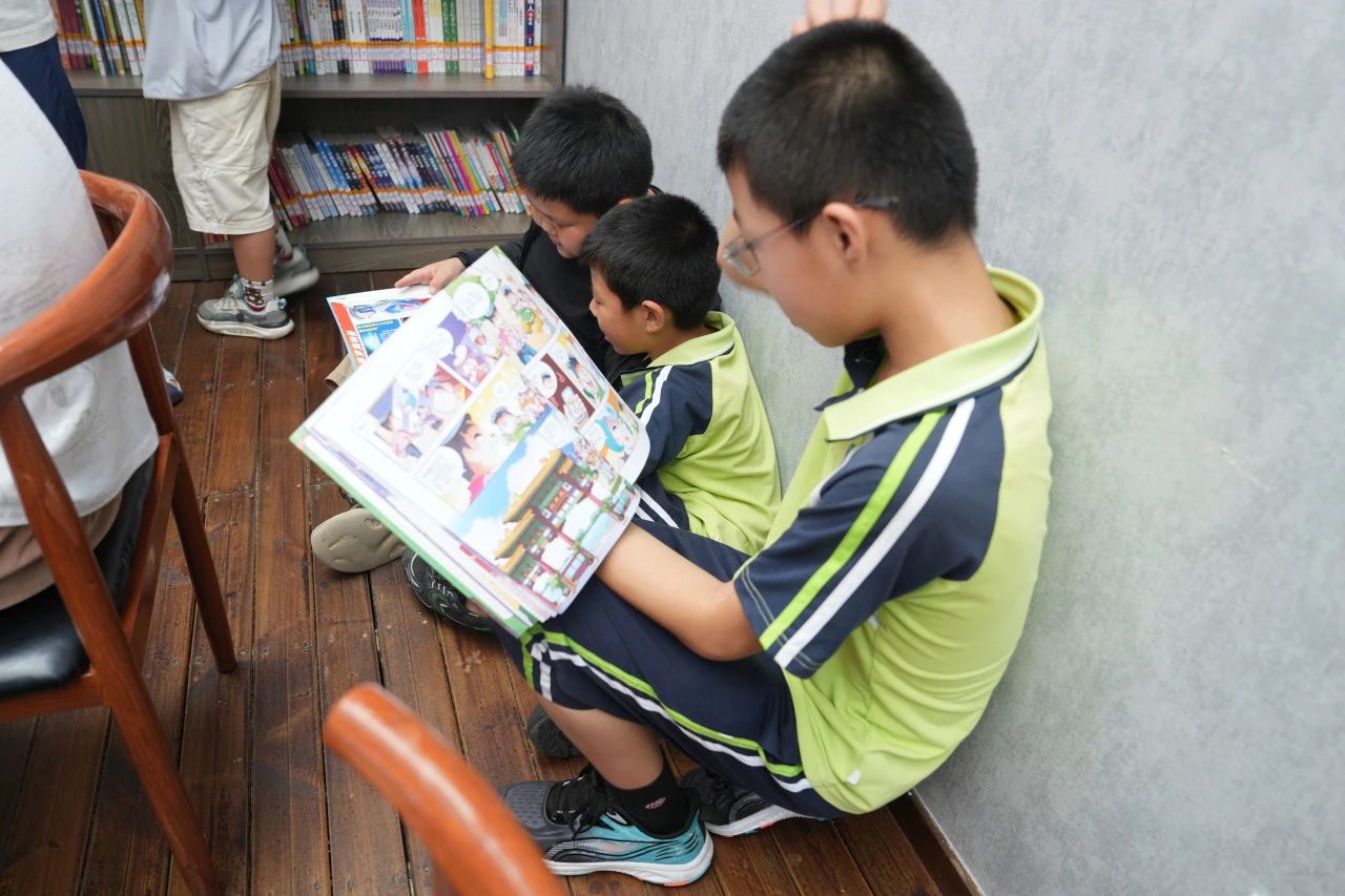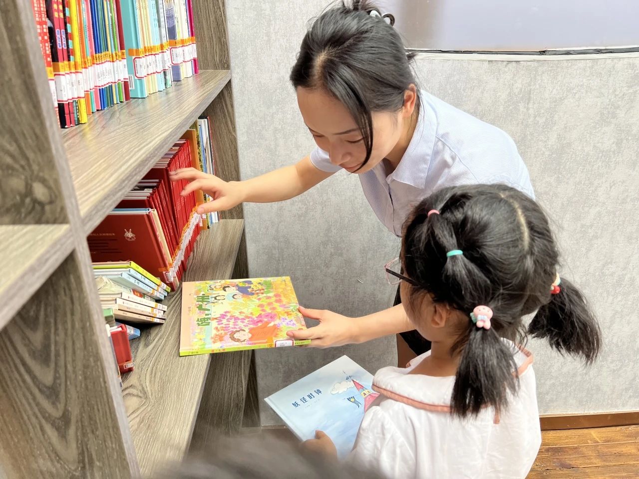 高尔基曾说过:“书籍是人类进步的阶梯”,阅读也是开启孩子智慧的窗户。煌上煌孺子书房是南昌市第53家孺子书房,2000余册图书里精美的绘本图册就达300多册。进入凉爽的孺子书房,小朋友们一下子就被充满想象力的画册吸引,工作人员也和孩子们坐在一起,带着他们感受阅读的快乐。