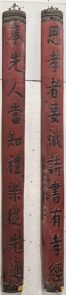 思孝 奉先 奉先人当知礼乐从先进思孝者要识诗书有孝经上款:大清光绪三年岁次丁丑仲冬月下款:嗣孙湛廷 敬献