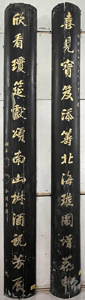 喜见宝笈 欣看瑶筵 喜见宾笈添筹北海璇图增花中欣看瑶筵献颂南山树酒祝芳辰上款:下款:姻眷 仝顿首拜